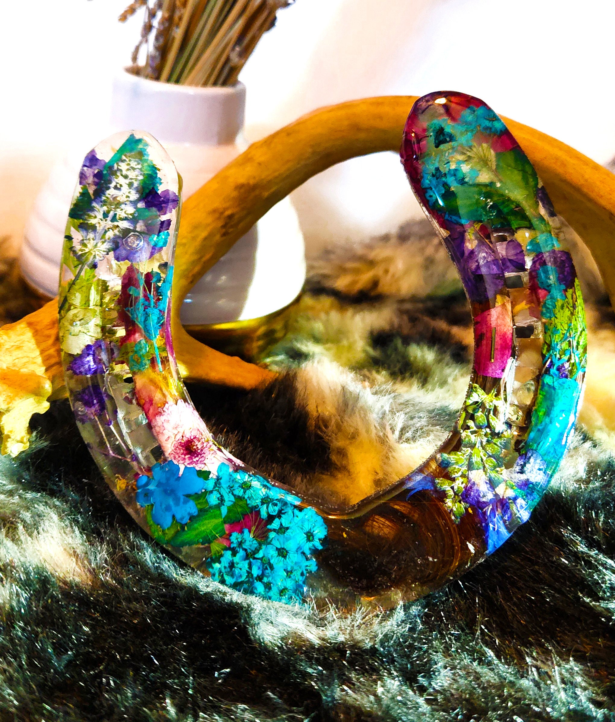 The seller was extremely kind and very responsive to my messages. Came as described with very nice packaging. I wasn’t quite as impressed with the final product as I thought I would be with the price tag it has. The back of the horseshoe wasn’t really smoothed out and had a couple pieces of flower protruding from the epoxy on the back. Some small imperfections on the horseshoe. Otherwise it is a beautiful memorial.